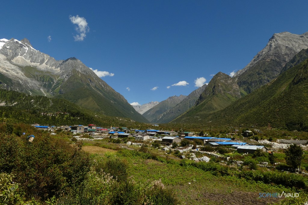 Premières ambiances au pied du Manaslu à l’arrivée à Samagaun, dans la vallée.
