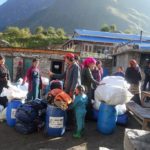L’expédition s’organise pour monter le matériel au camp de base à 4850 m.
