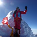 Attendre 24 heures ou tenter. A minuit, ça souffle encore mais n’ayant pas dormi je décide de tenter car 24 heures dans la tente à attendre ballotés comme dans un shaker risque plus de nous épuiser que de tenter dans la foulée.  Je passe le mot, les filles partent vers 1h00 et nous partons avec Na Dorjee à 2h30. Yan avait raison, après une belle lutte les premières heures, le vent tombe avec les premières lueurs du jour. Vers 8000 mètres, nous troquons lampes frontales contre lunettes de soleil. L’arête sommitale est enfin en vue, personne, le sommet est à nous, le pas est lent et la fatigue bien présente mais le doute s’estompe, je vais y arriver ! J