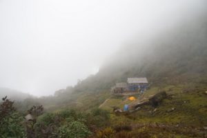 Je me trouve ce soir à Kongma (3600 m d’altitude), après avoir traversé une immense forêt de rhododendrons géants. Là, on ne parle plus de villages, mais tout au plus quelques petit lodges isolés.
