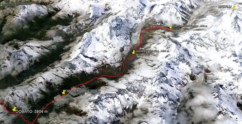 - de Dobato (3804 m) au camp de base Hillary (4820 m)