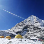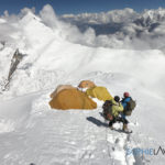 La montée au Camp 1 a à nouveau été longue et pénible avec cette neige fraîche, plus de 9 heures cette fois-ci ; sans parler de la montée au Camp 2 à 6550 m le lendemain dans un bon 40 cm de neige fraîche jusqu’au petit éperon situé en dessous de la grande arrête qui mène au Camp 3. Météo parfaite, au petit matin, notre équipe sherpa avec celle de Kari Kobler a prévu de fixer le Camp 3 et nous devions suivre le lendemain. Malheureusement au bout de 3 heures, les 8 sherpas ont fait demi-tour, les conditions étant trop dangereuses. “Essayé pas pu” comme on dit et sans aucun doute, le souvenir de Dawa encore trop présent. De retour à la tente, avec Sangay, nous décidons de redescendre au camp de base dans la foulée. J’adore ces retours au camp de base, c’est toujours un peu comme un retour à la maison. Même si la température est en dessous de zéro, même si la seule toilette est avec des lingettes, même si on s’éloigne à nouveau du sommet, il y a ce sentiment de “confort” et de sécurité que j’apprécie tellement, sans compter la bonne nourriture préparée par Rinji et son équipe.