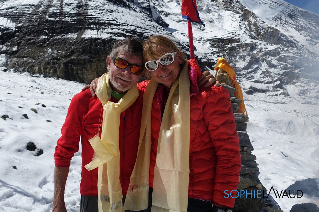 Sophie avec Carlos Soria pendant la puja