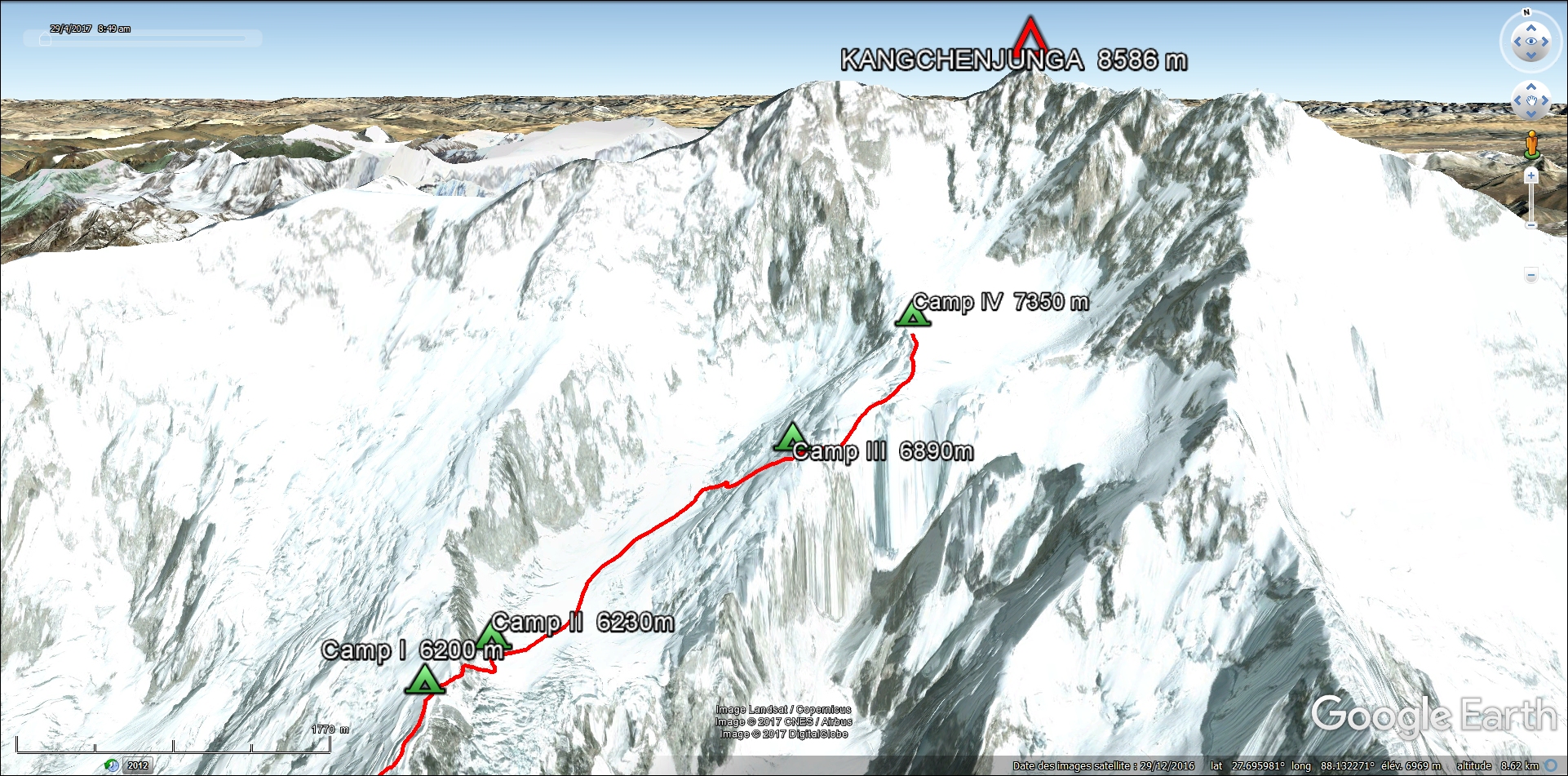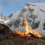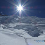 6 mai : départ pour le Camp 2. Les conditions sont relativement incertaines mais le 7 est annoncé comme beau. Il nous faut jongler avec la météo… On dit que c’est en Equateur qu’il y a les 4 saisons chaque jour mais là je pense que l’on peut en dire autant du Kangchenjunga 2017. Soleil, vent et neige pour ainsi dire tous les jours.