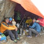 Je suis remontée avec Chhepal et Nupu au Camp 2. Pris dans une mini-tempête avec un vent violent, nous nous sommes réfugiés dans la tente d’une autre expédition au Camp 1 en attendant que le vent se calme un peu. Après s’être réchauffés, nous avons continué jusqu’au Camp 2. Nuit infernale avec un vent abominable. Nuit blanche … les prévisions sont-elles fausses ? Va-t-il vraiment faire beau demain ???