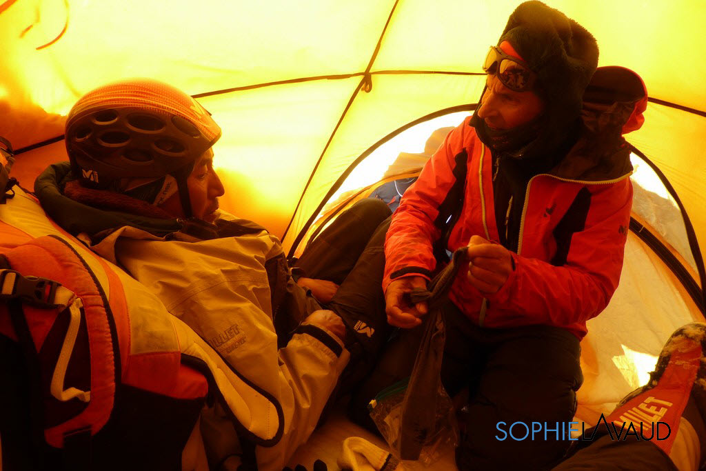 Changement de batteries au Camp 1 pour François