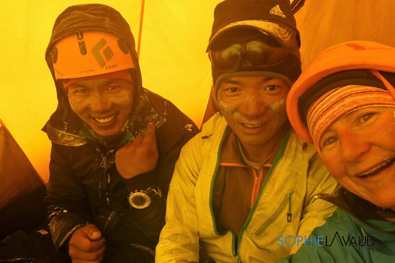 Chhepal Nupu et Sophie en attendant la fin de la tempête au Camp 1