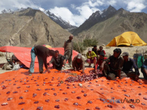 Atteindre le Camp de Base et dormir…Comme chacun sait le temps de récupération entre le retour du Makalu et le départ pour le K2 s’est réduit à 7 petites journées à Genève qui sont passées comme un éclair. Je pensais dormir dans l avion… Raté. Le vol d’Abu Dhabi à Islamabad partant à minuit, autant dire que la nuit a été courte.24 heures à Islamabad avec un vol pour Skardu à 8 heure du matin, les transferts, la chaleur… Récuperer ? raté… A Skardu, j’ai retrouvé mes sacs du Makalu que Nima a apporté directement de Katmandu. Opération lessives, réorganisation du matériel, refaire les sacs pour repartir… Repos ? raté… Moment très chouette avec les retrouvailles de l’équipe pakistanaise du Gasherbrum 2 et présentation autour d’un magnifique BBQ du reste de l’équipe locale. Avec un réveil à 5 h pour une journée en jeep jusqu’à Askoli. Un éventuel repos ? c’est encore raté !