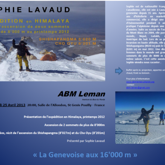 Continue ReadingNouvelle présentation de l’Expédition … Martial Mazabraud, Président, de “ABM Leman – Aventures du bout du monde”, m’a fait l’immense plaisir de m’inviter à l’une des ses soirées pour présenter l’expédition. Détails......