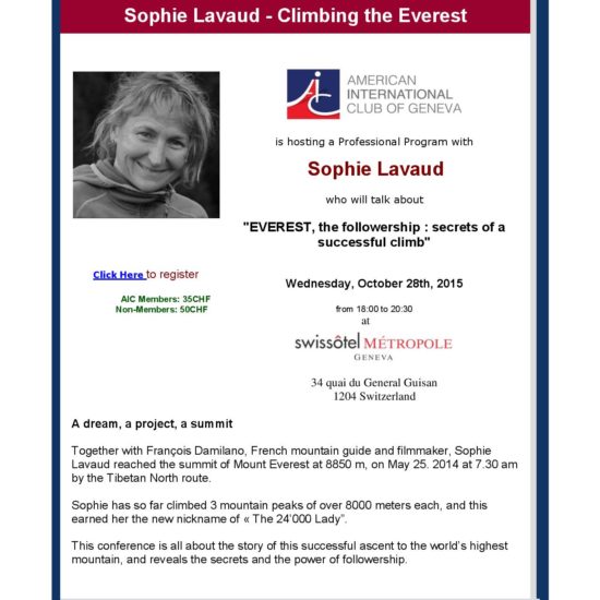 Continue ReadingAmerican International Club of Geneva This conference is all about the story of this successful ascent to the world’s highest mountain, and reveals the secrets and the power of followership.......