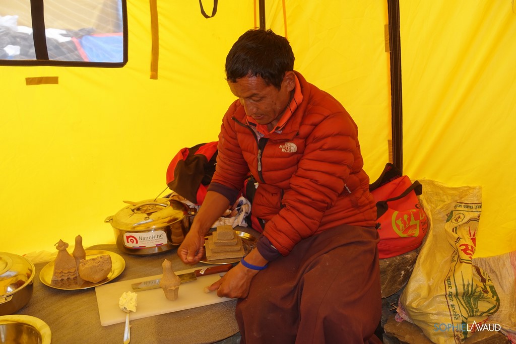 préparation du Lama avant la puja