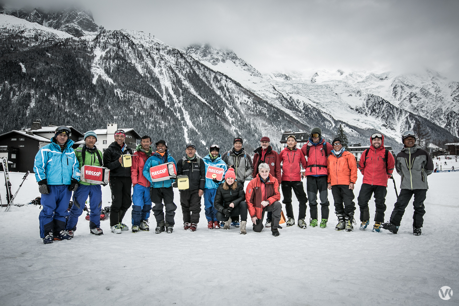 Formation et exercices de mise en situation de la technologie RECCO®. Pour celle est ceux qui ne connaissent pas, avec la technologie RECCO® vous êtes localisables par les services de secours en cas d’accident d’avalanche. Elle ne remplace pas l’utilisation du DVA mais augmente les chances d’être retrouvé à temps. Merci à Guy Robert et Anselme Baud pour l’organisation de cette formation avec les guides de haute montagne chiliens, boliviens et népalais à Chamonix.