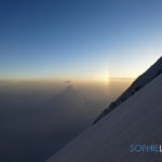 La distance déjà qui nous sépare est trop importante pour que je puisse imaginer les rattraper… Je fixe cette pente sommitale que je trouve trop exposée pour m’y aventurer toute seule. J’ai un piolet mais ce n’est pas suffisant…  Une photo, demi-tour… et à 20h je m’écroule dans ma tente au Camp 4…