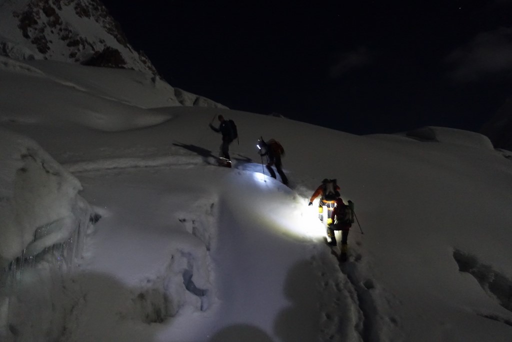 climbing icefall at night