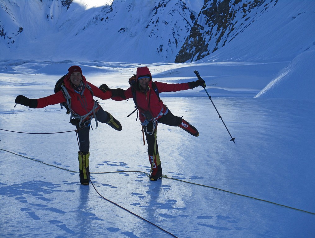 Laura and Sophie dancing on the glacier