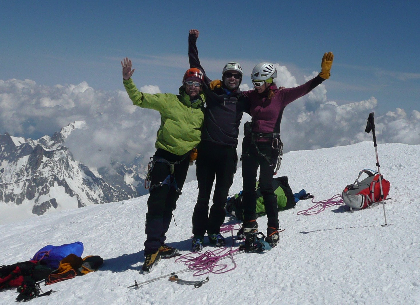 Depuis le refuge des Grands Mulets, arête sommitale en aller / retour et ski depuis Vallot !!