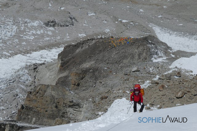 route vers le camp 1 avec le camp de base au fond